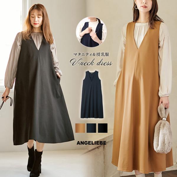 マタニティ 服 ワンピース 授乳しやすい リップルジャンパースカート 授乳服 妊婦服 長袖 マタニティワンピース 通勤 オフィス ジャンスカ 仕事服 Angeliebe Paypayモール店 通販 Paypayモール